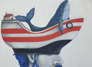 Il Murale rappresenta in chiave surreale le tradizioni culturali legate al territorio barese: un marinaio dalla folta barba blu oltremare, porta in salvo pesci dei nostri mari, dal suo cappello a forma di barca, con i colori della bandiera della città di Bari, prende il volo una balena blu trionfante verso un mondo più pulito.